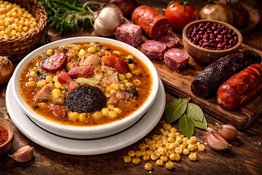 É um prato substancial, calórico e profundamente reconfortante, pensado para alimentar famílias numerosas e sustentar longas jornadas de trabalho. A sua preparação lenta permite que os sabores se fundam, resultando numa textura espessa e num paladar intenso.